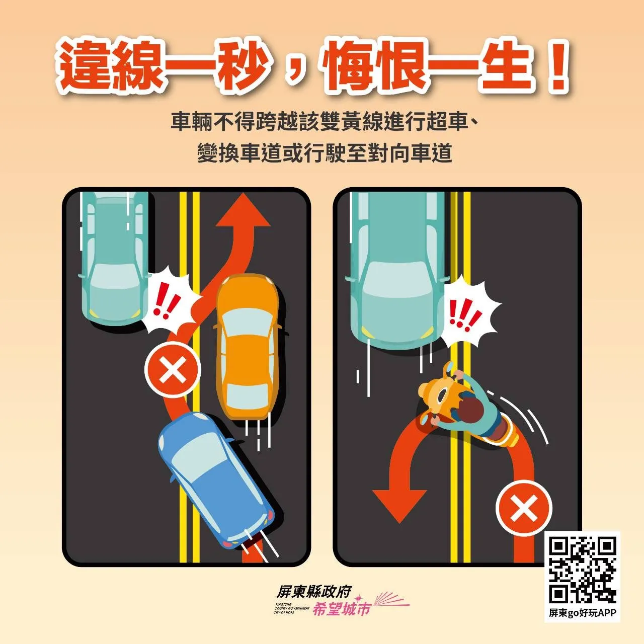 > 遵守標誌線|行車不看線 危險馬上見!